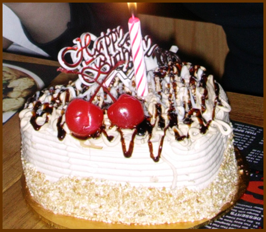 This cake is definitely something different from my usual. My friends bought it for my birthday, but honestly, I have no idea what kind it is. I just know it tasted like coffee and it’s a type of cheesecake. It’s lighter and fluffier than usual, not too heavy or filling with delicious coffee flavour. It tasted great, except the cherries reminded me of cough medicine. I’ve still got a quarter left in my fridge, so I’ll be skipping dinner for three days to finish it!