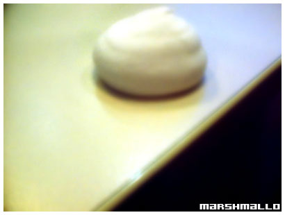 Today, Stella brought over a marshmallow filled with strawberry jam. Yummy!
