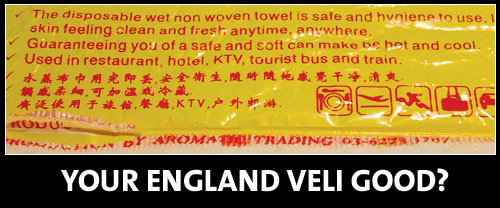 By the way, my colleague showed me something funny—a plastic hand towel cover that he kept. It had some super cool “England” on it!